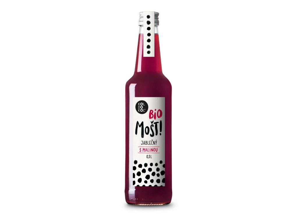 Zloženie: 93% jablkový mušt BIO, 7% malinové pyré BIO
