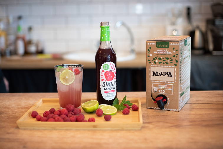 Zloženie: trstinový cukor, voda, maliny (20 %), bio citrónová šťava.