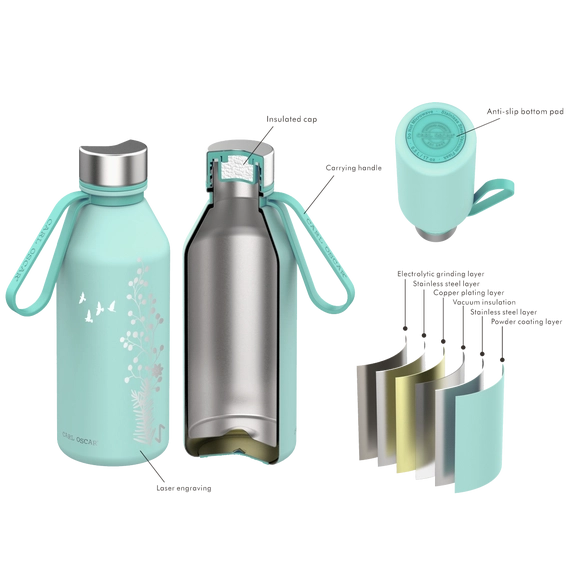 a horúce až 12 h. Práškový povlak znamená, že je dobre uchopiteľná, nepotí sa v ruke a je extra trvanlivá. Na spodnej časti má protišmykovú podložku a hore silikónový popruh pre ľahké prenášanie. Termofľaša je